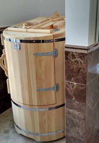 Вот такая купель стоит в семейном отеле. За счет пластиковой вставки легко мыть после большого потока клиентов. Пользуемся давно, поэтому на качество проверили!