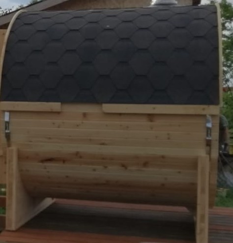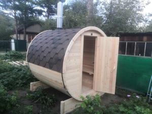 Вот такую баню-бочку 3 м заказывал в конце августа, через месяц ее изготовили, доставили в срок. Больше всего меня порадовало то, что баня реально готова к парению через полчаса примерно, фантастическая скорость прогрева! Баня очень комфортная и вместительная и дизайн оригинальный, на участке, как украшение стоит))Спасибо Дарам Кедра за такую красоту!