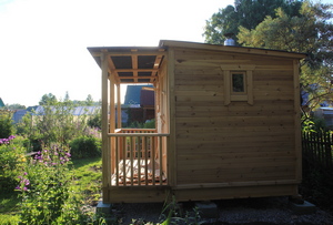 Мы, наверное, одни из первых, кто заказал такую баньку себе на дачу, т.к. Дары Кедра совсем недавно занялись производством бань классической формы. Такая банька хотя и небольшая, но вполне комфортная и главное - топится быстро! Огромный ее плюс - это мобильность! Рекомендую всем тем, кто сомневается!))